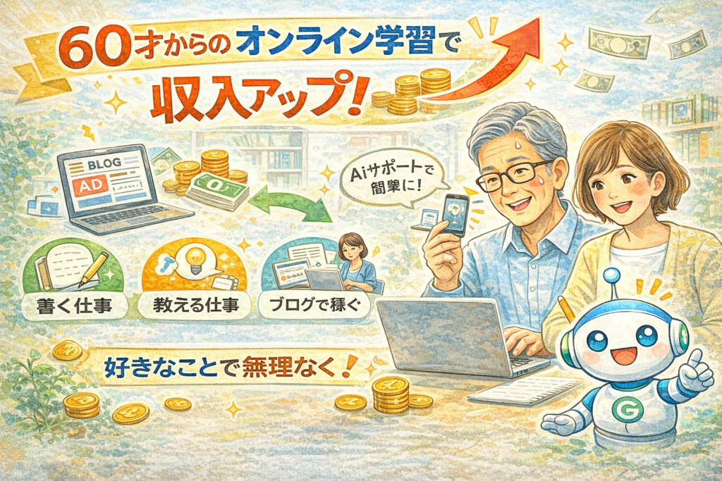 はじめに|学びが“収入”につながる時代へ 「もう60代だから、新しいことは難しい…」そう感じていませんか? しかし今は、インターネットの普及によって👉 “学びながら収入を得る”ことができる時代です。 しかも、 自宅でできる 自分のペースでOK 無理なく... -
