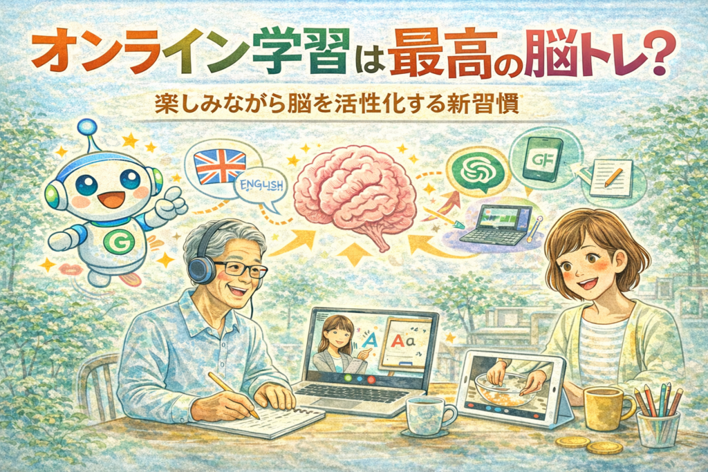 はじめに|「学ぶこと=若さを保つ鍵」 「最近、物忘れが増えた気がする…」「頭を使う機会が減ってきた…」 そんな悩みを感じている方にこそおすすめなのが、**オンライン学習=“最高の脳トレ”**という考え方です。 実は、年齢を重ねても脳は成長し続けるこ... -