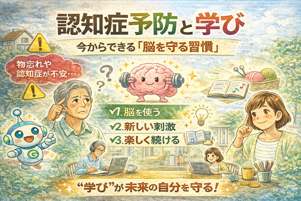 はじめに|“学び続ける人”はなぜ元気なのか? 年齢を重ねると気になってくるのが、「物忘れ」や「認知症」の不安。 しかし一方で、いくつになっても元気で、頭もはっきりしている人もいます。 その違いの一つが、 👉 「学び続けているかどうか」 実は、学... -