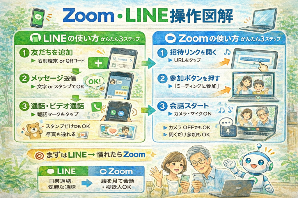 そんなときに役立つのが「Zoom」と「LINE」です。